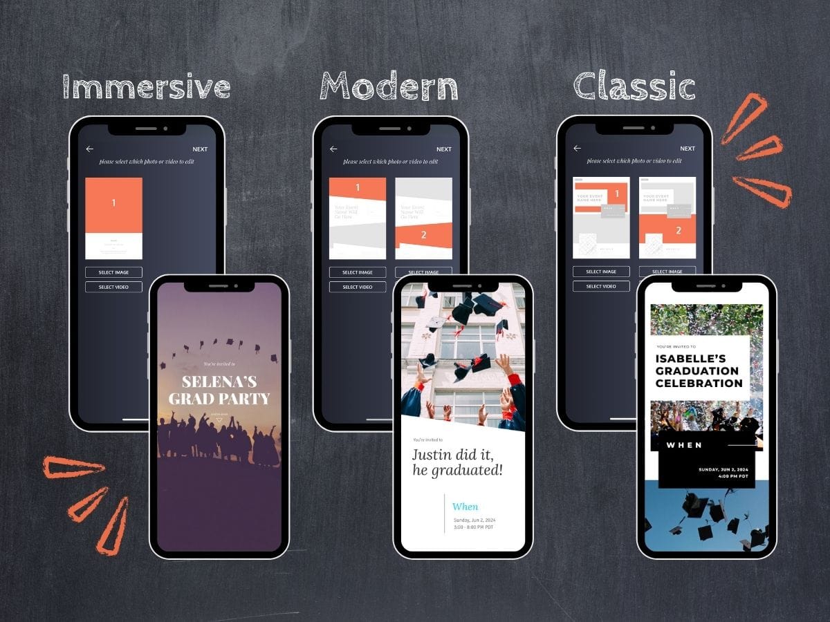 Ready to create an online invitation that wows? Download Poply for free today and let your creativity shine! With our user-friendly platform and AD-FREE customizable features, designing the perfect graduation invitation has never been easier with our textable invitations.