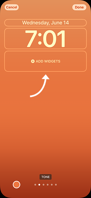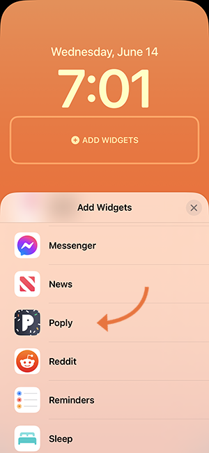 Tap Add Widgets and scroll down the list of widgets until you see Poply. If you have already installed one or more lock screen widgets, you can access the list of widgets by tapping the widget bar.